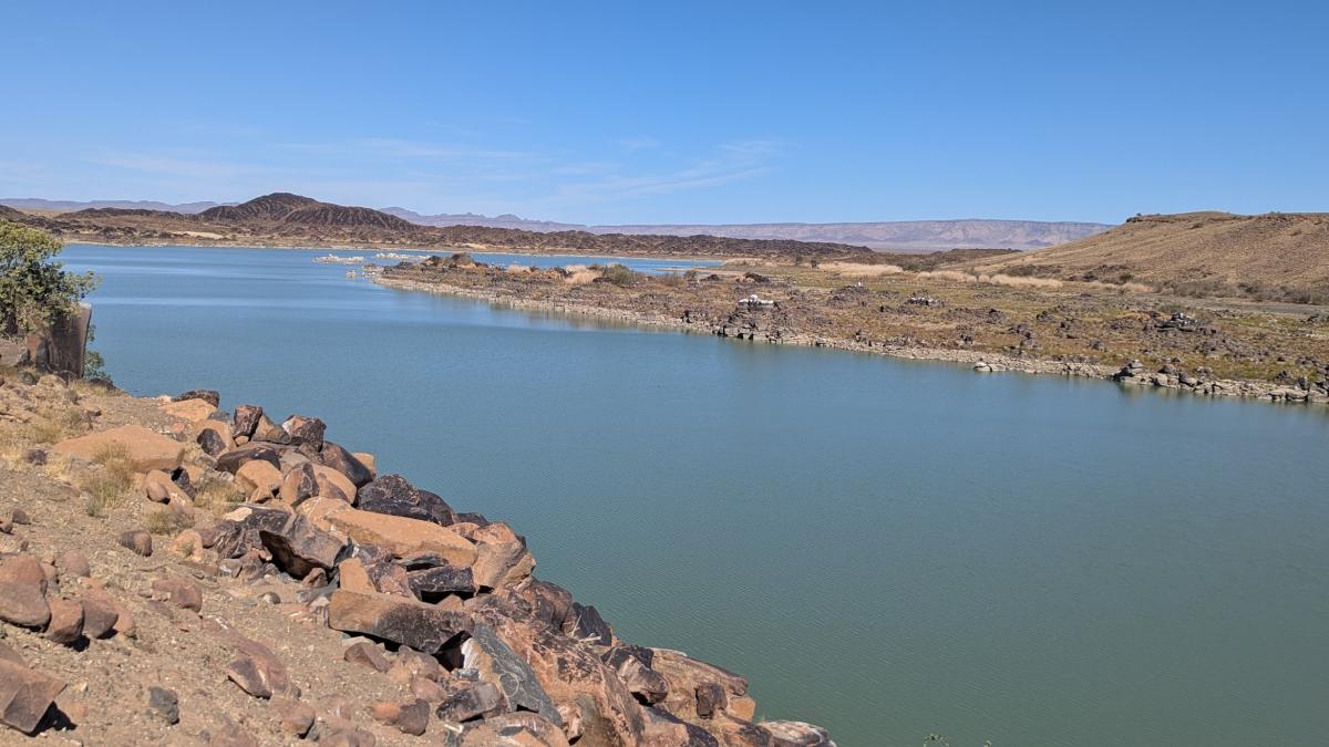 Weiter geht es zum Naute Stausee. Es soll der letzte Stopp des Tages sein. Leider führt der See nur sehr wenig Wasser.