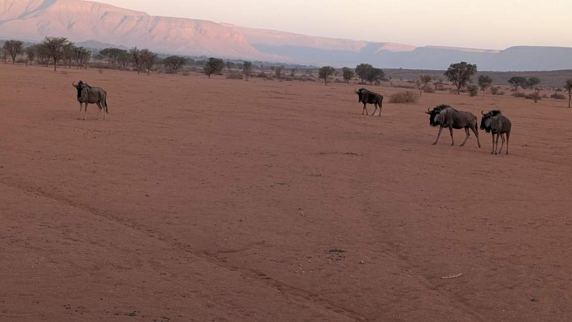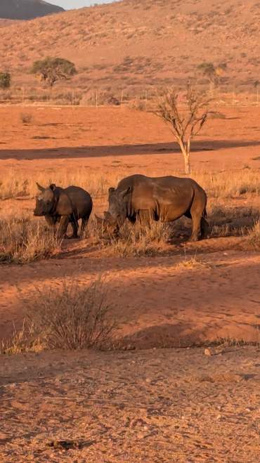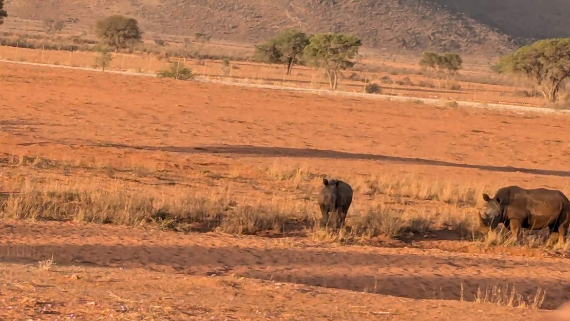 Oryxe, Giraffen, Löffelhunde und sogar Nashörner zeigen sich uns.